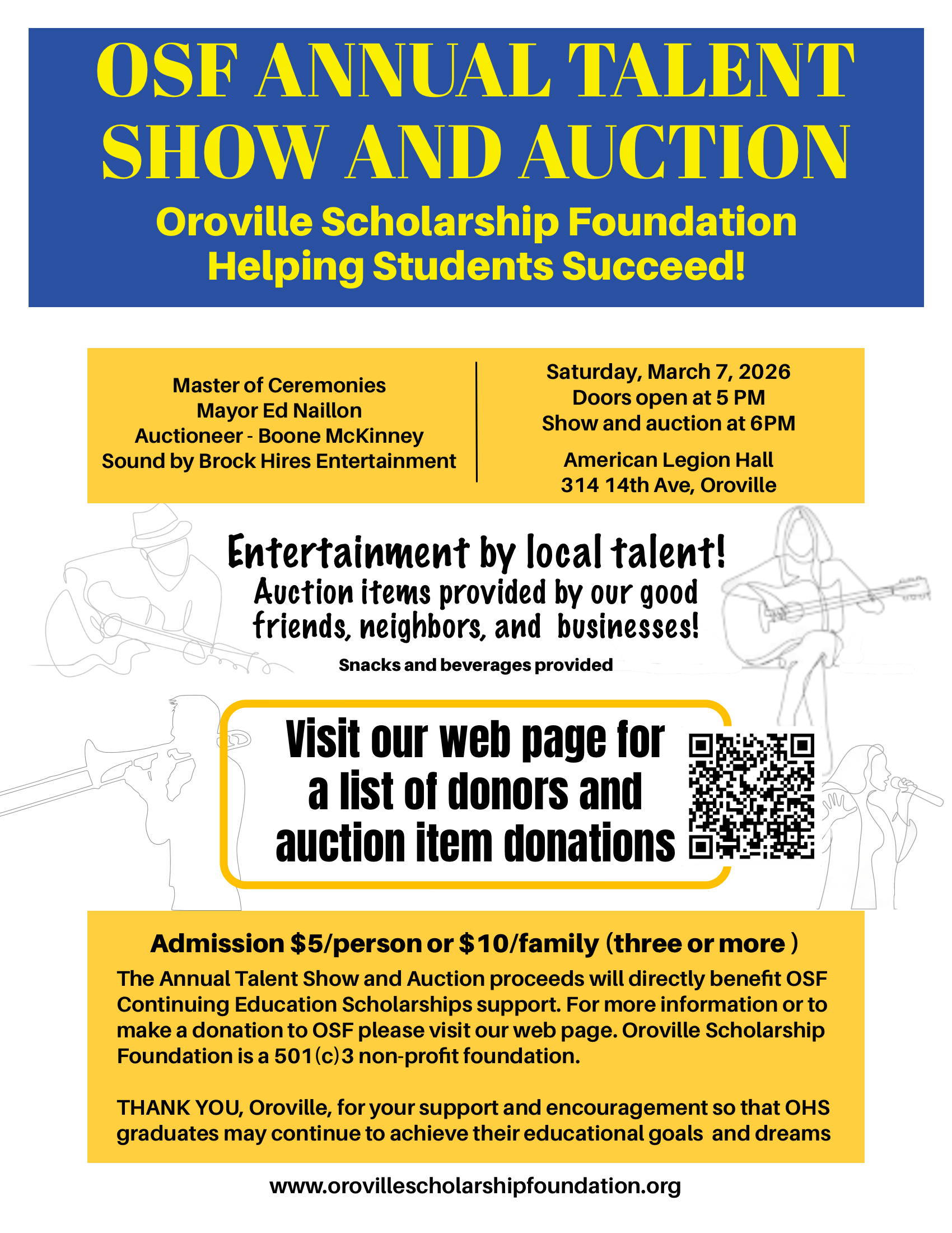 scholarship fundraiser. This event is held each March to raise money for the Oroville Scholarship